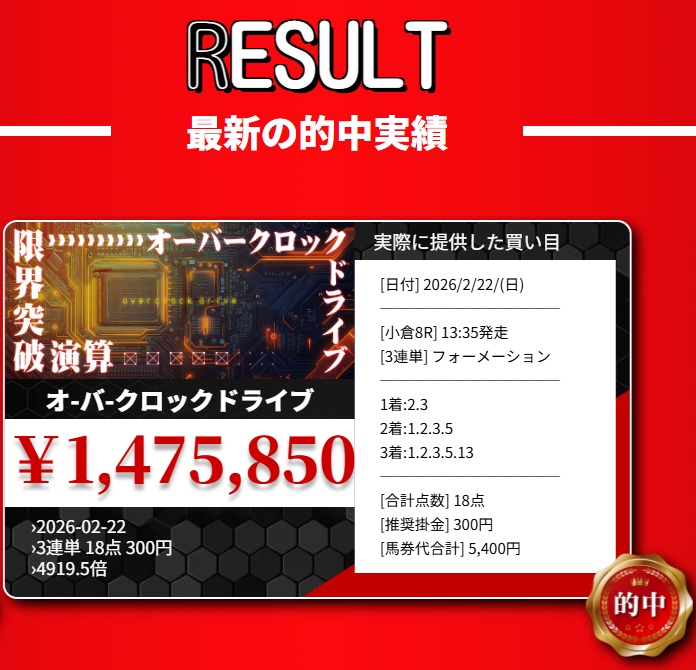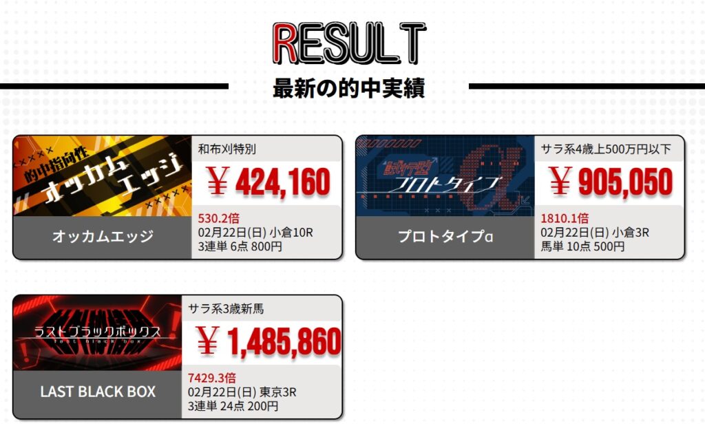 現在4週連続で一撃7桁配当を的中させている、『競馬レッドライナー』。