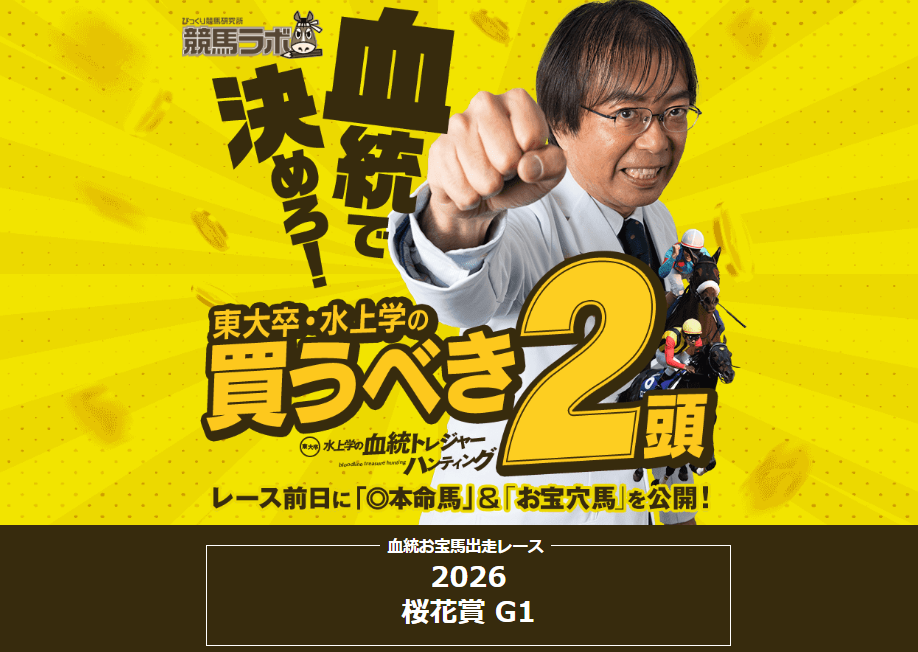 競馬ラボでは毎週土日開催のメイン重賞で「◎本命馬」と「お宝穴馬」を無料提供していの。